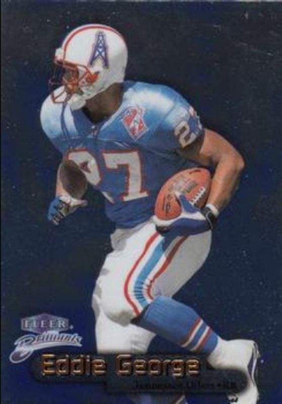 The Eddie George 1998 Fleer Brilliants #42B Blue card is 1 of 9 Eddie George's card variations in the 1998 Fleer Brilliants set being tracked by Sports Card Investor, including #42 Base, #14SS Shining Stars, #14 Shining Stars, #42G Gold /99, and #42TG Gold /99.