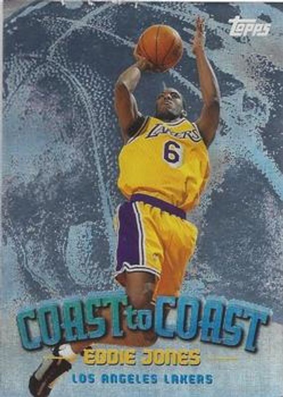 The Eddie Jones 1998 Topps #CC3 Coast to Coast card is 1 of 6 Eddie Jones' card variations in the 1998 Topps set being tracked by Sports Card Investor, including Base, O-Pee-Chee, Promos, Autographs, and Cornerstones.