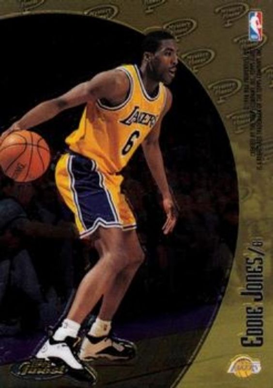 The Eddie Jones 1998 Topps Finest #M20 Mystery Finest card is 1 of 12 Eddie Jones' card variations in the 1998 Topps Finest set being tracked by Sports Card Investor, including Base, Base - No Coating, Refractor, Refractor - No Coating, and Promos.