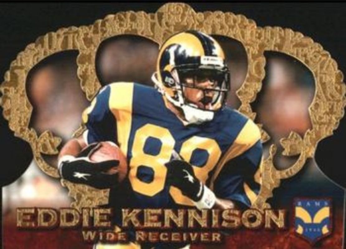 The Eddie Kennison 1996 Pacific Crown Royale #CR-44 Base Rookie card is 1 of 3 Eddie Kennison's card variations in the 1996 Pacific Crown Royale set being tracked by Sports Card Investor, including Blue, and Silver.