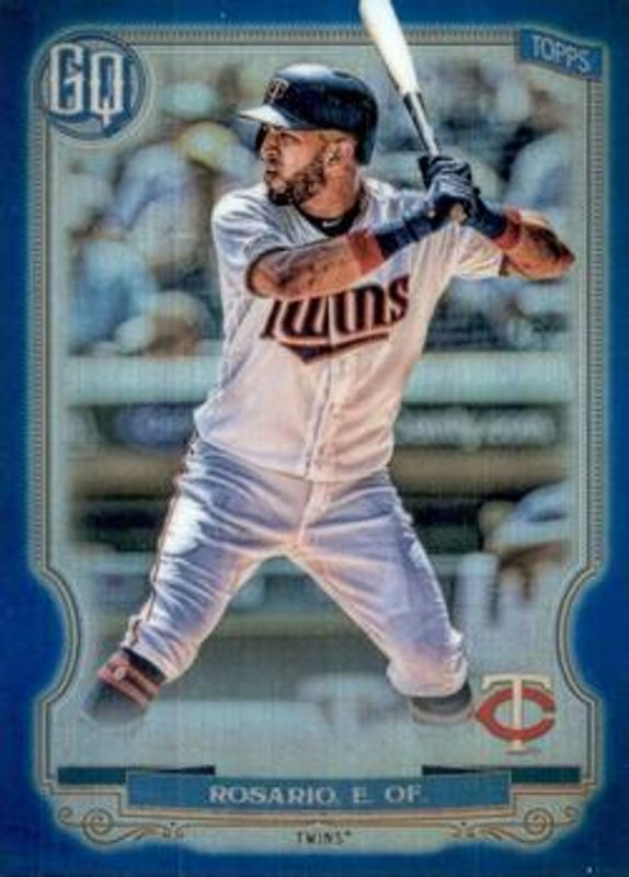 The Eddie Rosario 2020 Topps Gypsy Queen #190 Chrome Box Toppers - Blue Refractor /99 card is 1 of 20 Eddie Rosario's card variations in the 2020 Topps Gypsy Queen set being tracked by Sports Card Investor, including #190b Base, #190 Base, #190 Bazooka Back, #190 GQ Logo Swap, and #190 Green.