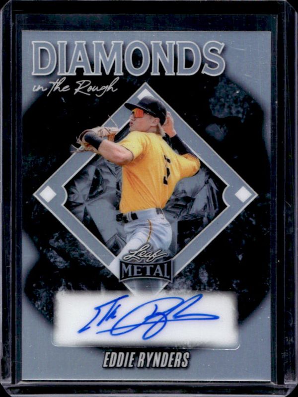 The Eddie Rynders 2025 Leaf Metal #DR-ER1 Diamond in the Rough Autographs - Prismatic Silver /35 card is 1 of 58 Eddie Rynders' card variations in the 2025 Leaf Metal set being tracked by Sports Card Investor, including Base Set - Lite Brite Silver /99, Base Set - Prismatic Blue /49, Diamond in the Rough Autographs - Lite Brite Silver /49, Base Set - Prismatic Red /25, and Diamond in the Rough Autographs - Crystal Silver /25.