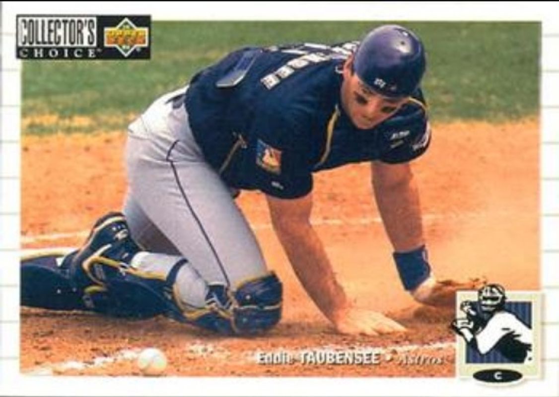 The Eddie Taubensee 1994 Upper Deck Collector's Choice #621 Base card is 1 of 3 Eddie Taubensee's card variations in the 1994 Upper Deck Collector's Choice set being tracked by Sports Card Investor, including Gold Signatures, and Silver Signatures.