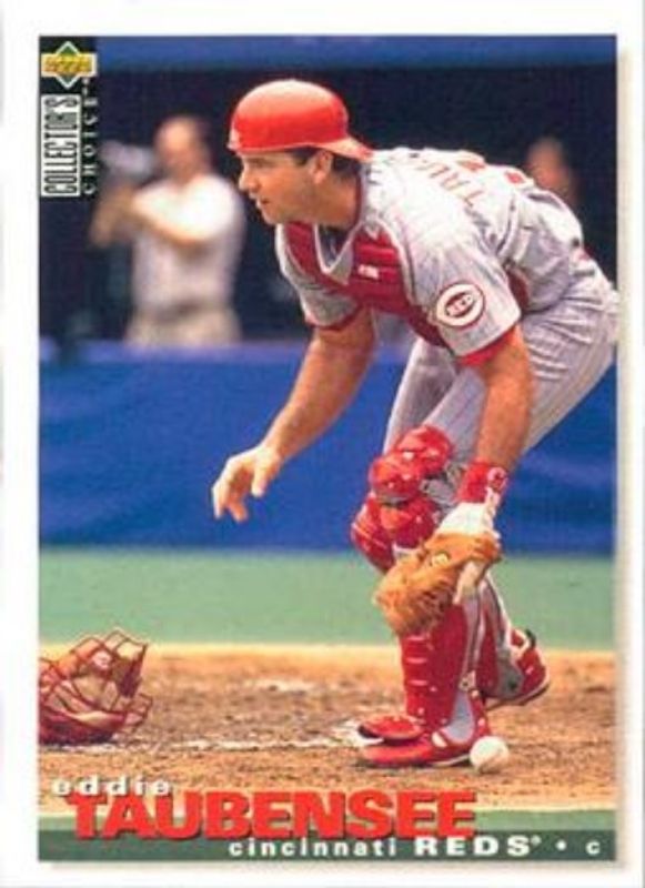 The Eddie Taubensee 1995 Upper Deck Collector's Choice #432 Base card is 1 of 3 Eddie Taubensee's card variations in the 1995 Upper Deck Collector's Choice set being tracked by Sports Card Investor, including Gold Signatures, and Silver Signatures.