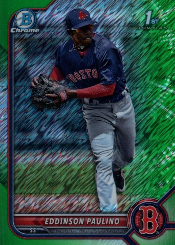 The Eddinson Paulino 2022 Bowman Chrome #BCP-175 Prospects - Green Shimmer Refractor /99 (1st) card in Raw condition has not changed in price in the last 30 days and was last sold for $2.25 .