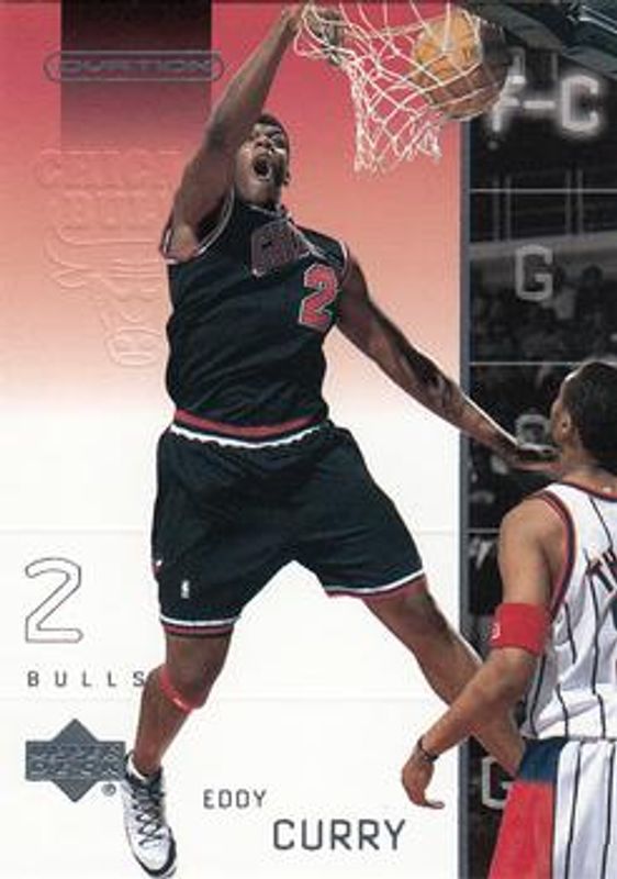 The Eddy Curry 2002 Upper Deck Ovation #9 Base /2999 card is 1 of 3 Eddy Curry's card variations in the 2002 Upper Deck Ovation set being tracked by Sports Card Investor, including Authentics Shooting Shirt, and Authentics Shooting Shirt Gold /15.