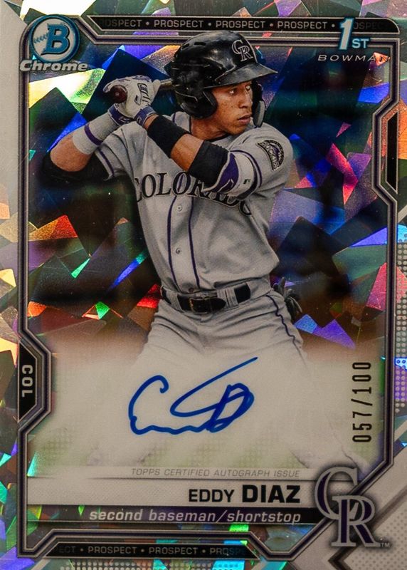 2021 Bowman Eddy Diaz Chrome Prospect Auto Atomic Refractor Auto 2/100 Rockies