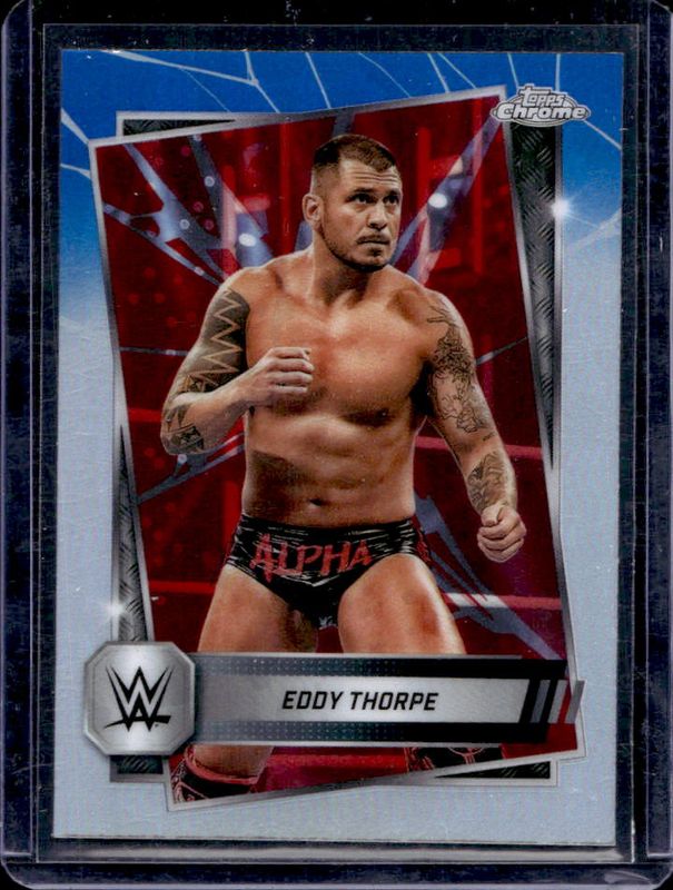 The Eddy Thorpe 2025 Topps Chrome WWE #108 Red & Blue Refractor card is 1 of 50 Eddy Thorpe's card variations in the 2025 Topps Chrome WWE set being tracked by Sports Card Investor, including Base, Black & Gold Refractor, Geometric Refractor, Neon Green & Black Refractor, and Pink Shimmer Refractor.
