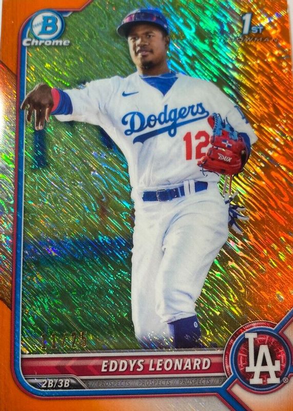 Best Prices Available For Sale of Eddys Leonard 2022 Bowman #BCP-57 Chrome Prospects - Orange Shimmer Refractor /25 (1st)