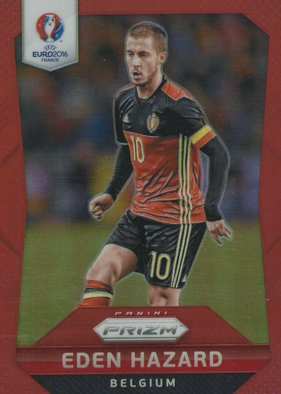 The Eden Hazard 2016 Prizm Euro #22 Red /149 card in Raw condition has not changed in price in the last 30 days and was last sold for $3.75 .