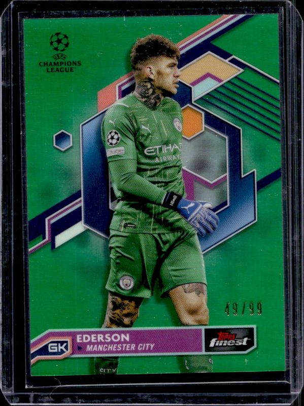 Ederson (Goalkeeper) 2022 Topps Finest UEFA Club Competitions #129 Green Refractor /99 RAW Price Guide