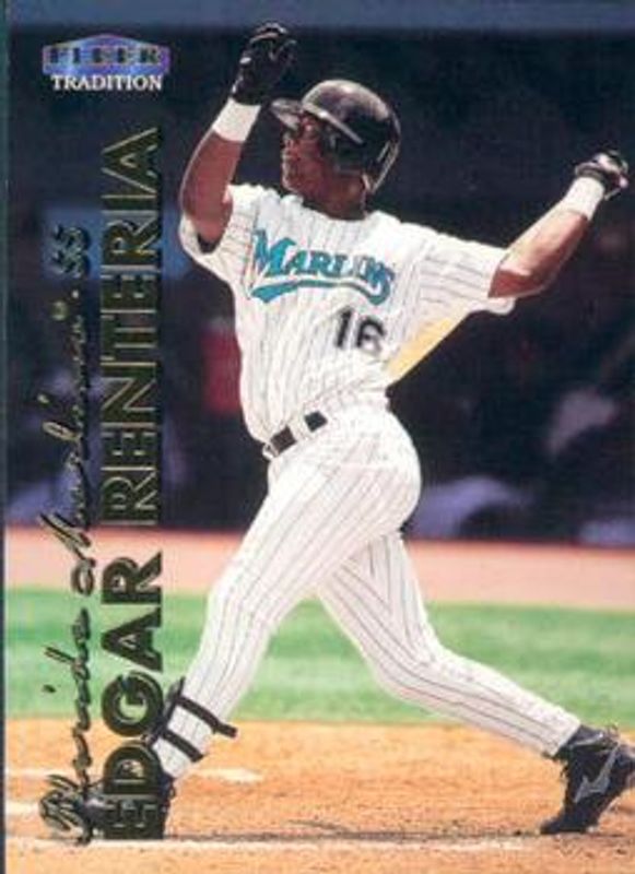 The Edgar Renteria 1999 Fleer Tradition #242 Base card is 1 of 4 Edgar Renteria's card variations in the 1999 Fleer Tradition set being tracked by Sports Card Investor, including Millennium, Warning Track Collection, and Starting 9 /9.