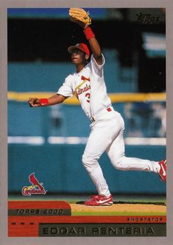 The Edgar Renteria 2000 Topps #352 Base card is 1 of 3 Edgar Renteria's card variations in the 2000 Topps set being tracked by Sports Card Investor, including Home Team Advantage, and Limited Edition /4000.