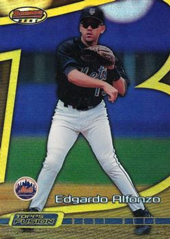 The Edgardo Alfonzo 2001 Topps Fusion #66 Base card is 1 of 4 Edgardo Alfonzo's card variations in the 2001 Topps Fusion set being tracked by Sports Card Investor, including #60 Base, #62 Base, and #83 Base.