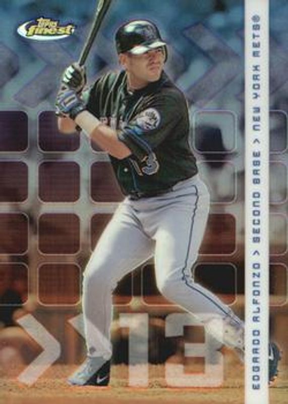 The Edgardo Alfonzo 2002 Topps Finest #51 Refractor /499 card is 1 of 3 Edgardo Alfonzo's card variations in the 2002 Topps Finest set being tracked by Sports Card Investor, including Base, and X-Fractor /299.