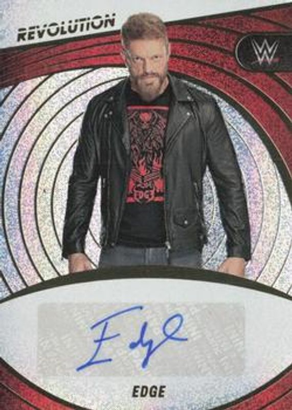 The Edge 2023 Revolution WWE #AG-EGE Autographs card is 1 of 23 Edge's card variations in the 2023 Revolution WWE set being tracked by Sports Card Investor, including Base, Astro, Fractal, Galactic, and Groove.