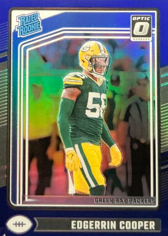 The Edgerrin Cooper 2024 Optic #231 Blue /199 Rookie card in Raw condition has not changed in price in the last 30 days and was last sold for $10.00 .