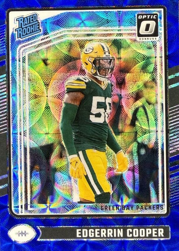 The Edgerrin Cooper 2024 Optic #231 Blue Scope Rookie card in Raw condition has moved down -$0.52 (-34.4%) in the last 30 days and was last sold for $0.99 .