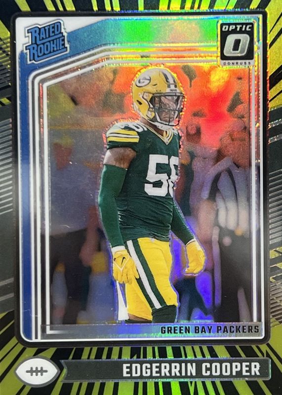 This card is 1 of 58 Edgerrin Cooper's card variations in the 2024 Optic set being tracked by Sports Card Investor, including Base, Blue Hyper, Blue Scope, Green Hyper, and Green Velocity.