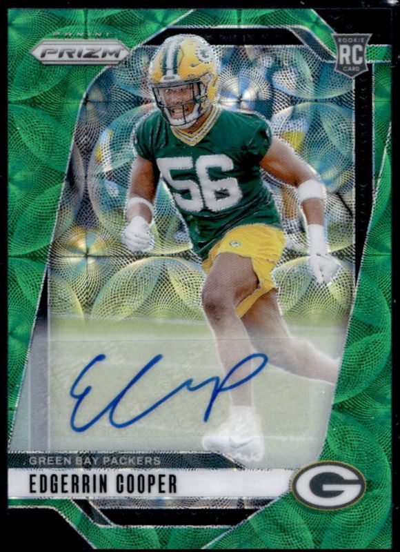 The Edgerrin Cooper 2024 Prizm #331 Base Autographs - Green Scope /75 Rookie card is 1 of 102 Edgerrin Cooper's card variations in the 2024 Prizm set being tracked by Sports Card Investor, including Base, Choice Blue Yellow Green, Choice Silver, Disco, and Green.