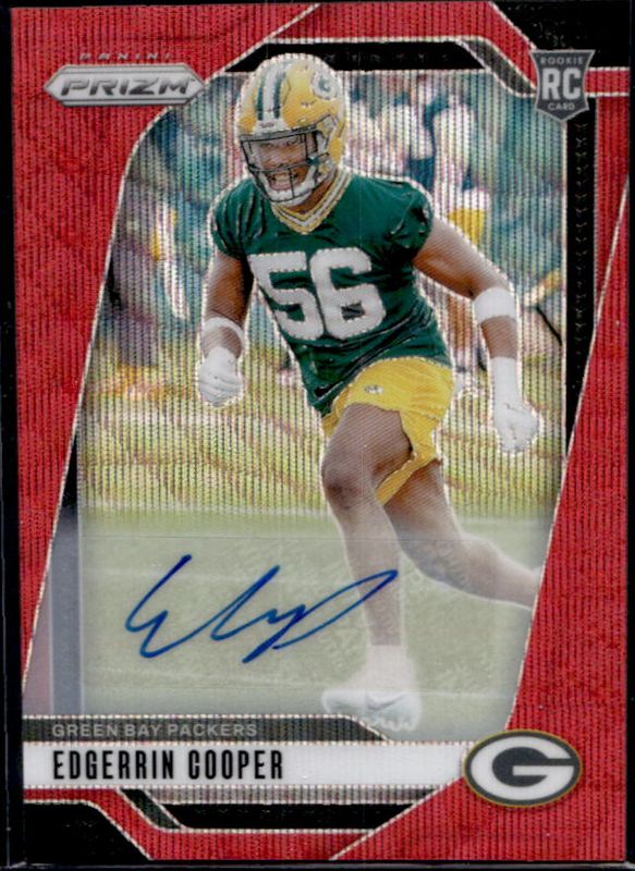 The Edgerrin Cooper 2024 Prizm #331 Base Autographs - Red Wave /149 Rookie card is 1 of 102 Edgerrin Cooper's card variations in the 2024 Prizm set being tracked by Sports Card Investor, including Base, Choice Blue Yellow Green, Choice Silver, Disco, and Green.