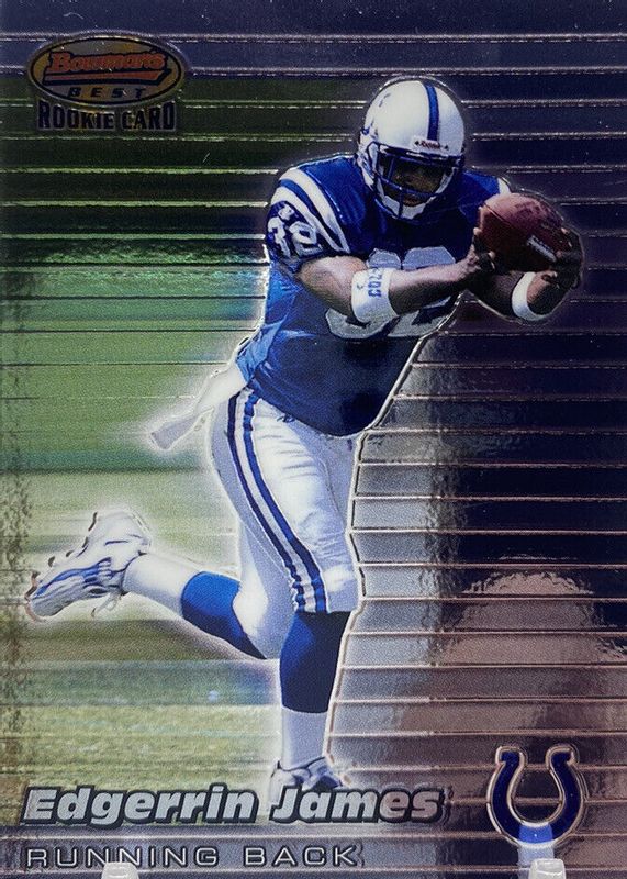 The Edgerrin James 1999 Bowman's Best #115 Base Rookie card in Raw condition has moved up $0.73 (+59.8%) in the last 30 days and was last sold for $1.95 .