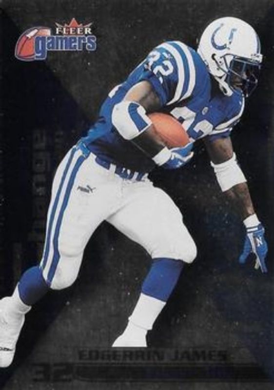 The Edgerrin James 2000 Fleer Gamers #13-CG Change the Game card is 1 of 5 Edgerrin James' card variations in the 2000 Fleer Gamers set being tracked by Sports Card Investor, including Base, Extra, Uniformity, and Yard Chargers.
