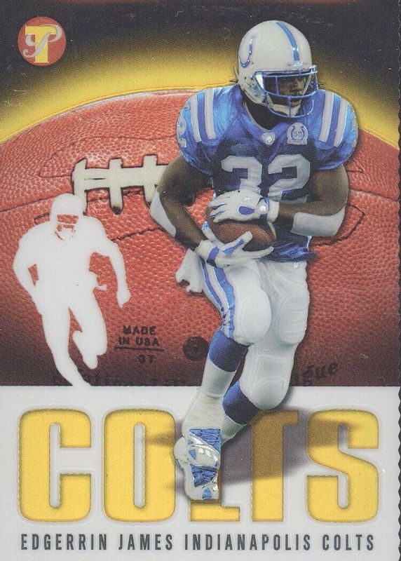 This card is 1 of 2 Edgerrin James' card variations in the 2003 Topps Pristine set being tracked by Sports Card Investor, including Veteran Refractor /99.