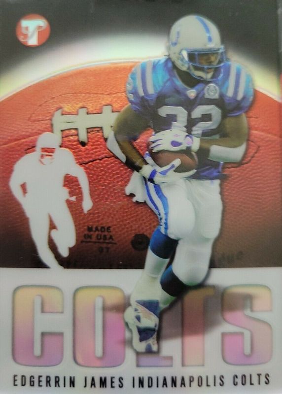 This card is 1 of 2 Edgerrin James' card variations in the 2003 Topps Pristine set being tracked by Sports Card Investor, including Veteran Gold Refractor /150.
