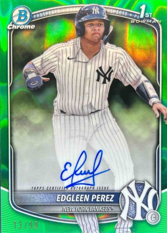 2025 Bowman Edgleen Perez Chrome 1st Auto Green Lava Refractor #/99 Yankees