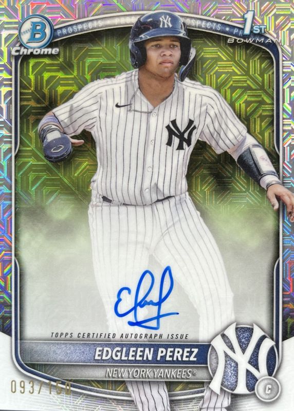2025 1st Bowman Edgleen Perez Chrome Auto HTA Choice /150 Refractor Yankees🔥🔥