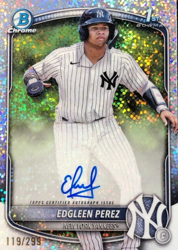 2025 Bowman Chrome Edgleen Perez 1st Auto Speckle Refractor 14/299 Yankees