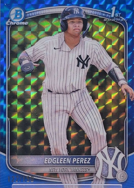 2025 Bowman Edgleen Perez Blue Geometric Refractor # 103/150 Yankees 1st Chrome