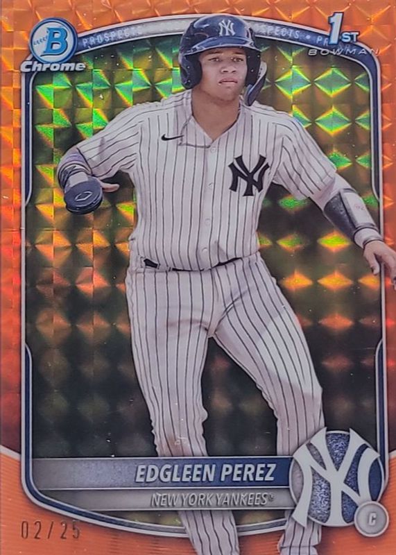 2025 1st Bowman Chrome Edgleen Perez #BCP-80 Orange Geometric Yankees 8/25 HD