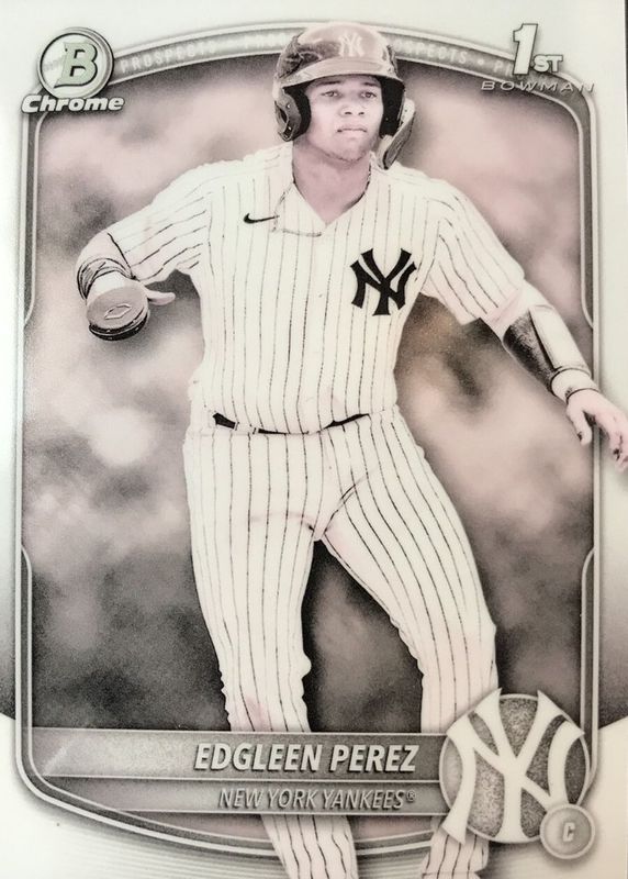 This card is 1 of 88 Edgleen Perez's card variations in the 2025 Bowman set being tracked by Sports Card Investor, including Chrome Prospects (1st), Chrome Prospects - Gumball Refractor (1st), Chrome Prospects - Mini Diamond Refractor (1st), Chrome Prospects - Peanuts Refractor (1st), and Chrome Prospects - Popcorn Refractor (1st).