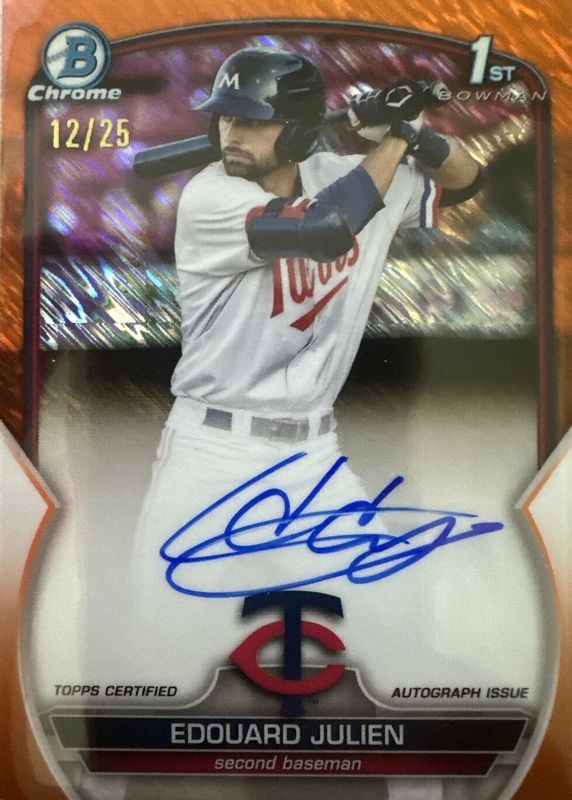 Edouard Julien 2023 Bowman #CPA-EJ Chrome Prospect Auto - Orange Shimmer Refractor /25 (1st) Rookie RAW Price Guide