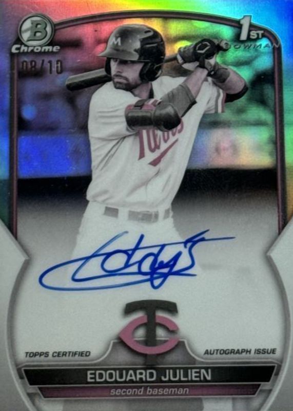 Edouard Julien 2023 Bowman #CPA-EJ Chrome Prospect Auto - Pearl Refractor /10 (1st) Rookie RAW Price Guide