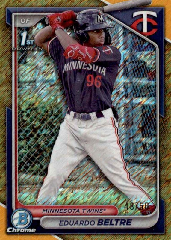 Best Prices Available For Sale of Eduardo Beltre 2024 Bowman Chrome #BCP-170 Prospects - Gold Shimmer Refractor /50 (1st)