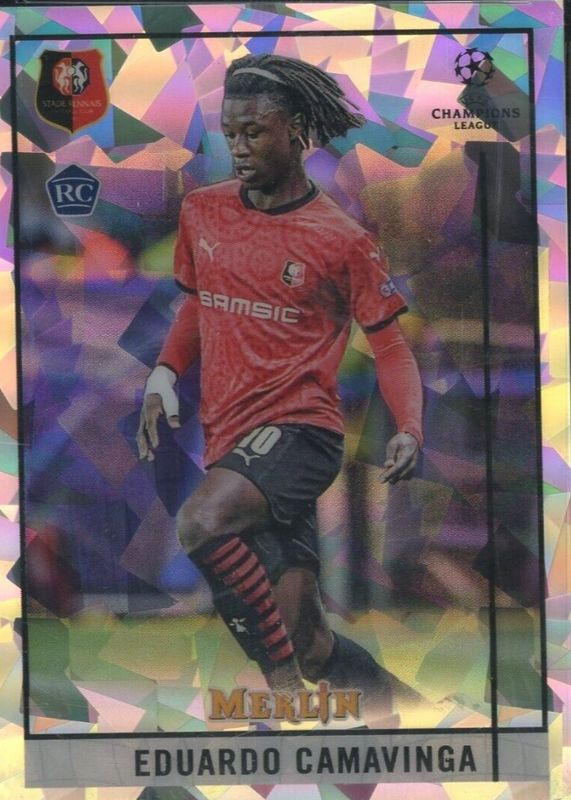 Eduardo Camavinga's Soccer cards are available in at least 147 sets. Eduardo Camavinga's biggest 7-day price movers are 2020 Topps Merlin Chrome UEFA Champions League #20 Atomic Refractor /250, 2020 Mosaic Euro #111 Red, and 2020 Topps Merlin Chrome UEFA Champions League #20 Orange Refractor /25.