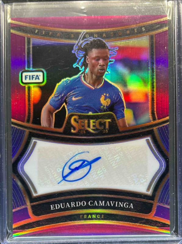 Eduardo Camavinga's Soccer cards are available in at least 147 sets. Eduardo Camavinga's biggest 7-day price movers are 2022 Donruss #17 Kaboom! /(SSP), 2022 Topps UEFA Superstars #MA-EC München 1993 Edition Chrome Autographs - Orange /25, and 2022 Topps Stadium Club Chrome UEFA Club Competitions #67 Refractor.