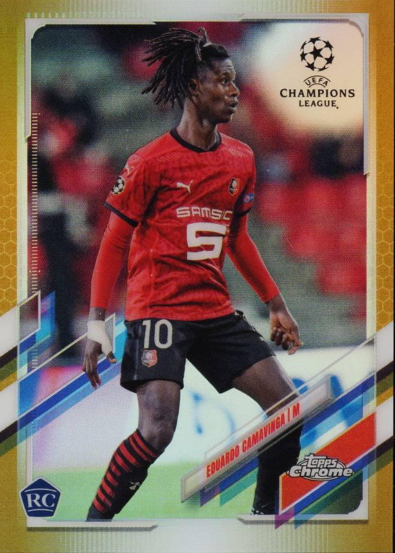 Recent Sales of Eduardo Camavinga 2020 Topps Chrome UEFA Champions League #44 Gold Refractor /50 Rookie Raw