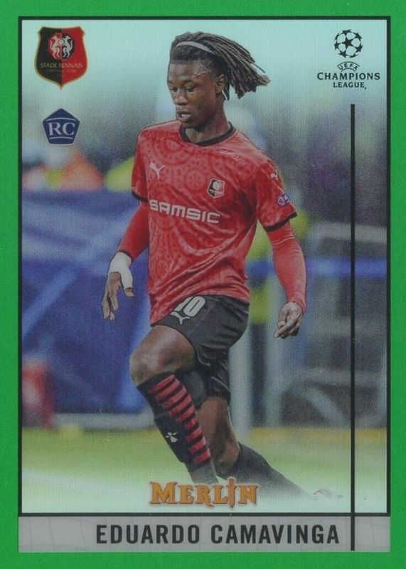 Best Prices Available For Sale of Eduardo Camavinga 2020 Topps Merlin Chrome UEFA Champions League #20 Green Refractor /99