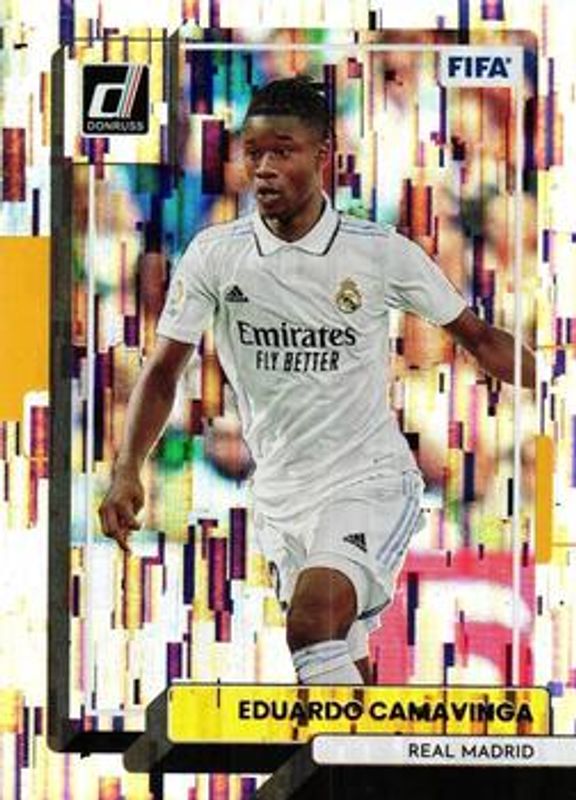 The Eduardo Camavinga 2022 Donruss #101 Silver (Rookie) /349 card is 1 of 65 Eduardo Camavinga's card variations in the 2022 Donruss set being tracked by Sports Card Investor, including #101 Base, #53 Base, #101 Green, #53 Green, and #101 Optic.