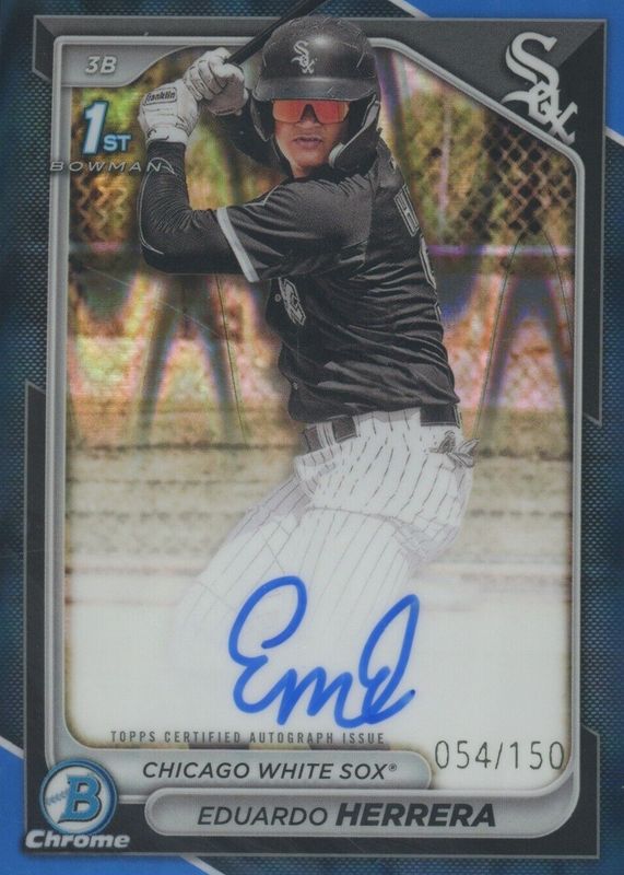 2024 Bowman Chrome Eduardo Herrera Auto Blue Raywave Refractor 1st #58/150