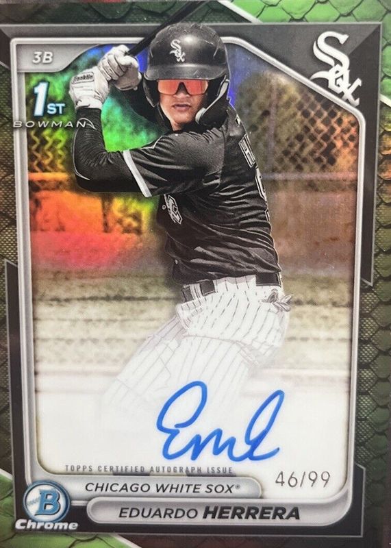 EDUARDO HERRERA 2024 1ST BOWMAN CHROME REPTILIAN GREEN AUTO /99 White Sox