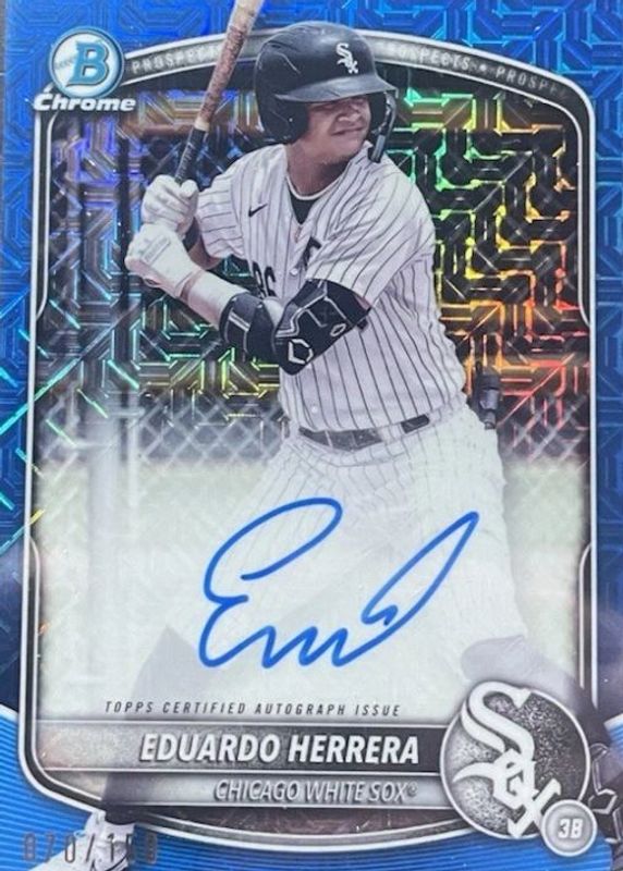 2025 Bowman Chrome Eduardo Herrera Blue Mojo Auto /150 White Sox