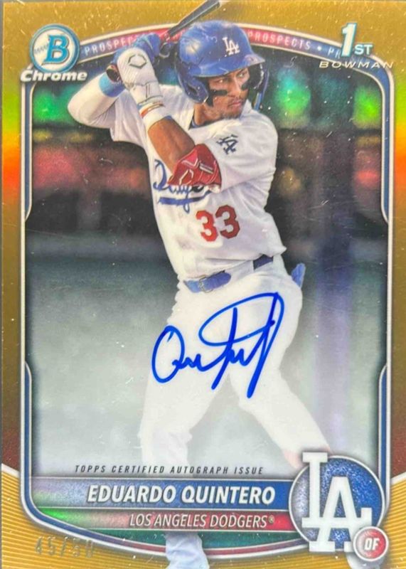 Auctions Ending Soon for Eduardo Quintero 2025 Bowman #CPA-EQ Chrome Prospect Auto - Gold Refractor /50 (1st) RAW