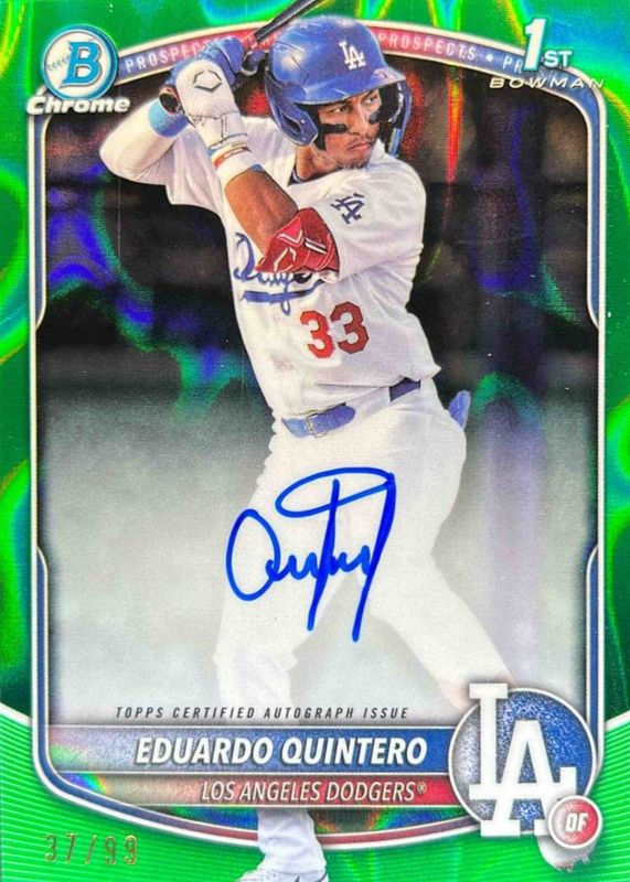 Best Prices Available For Sale of Eduardo Quintero 2025 Bowman #CPA-EQ Chrome Prospect Auto - Green Lava Refractor /99 (1st)