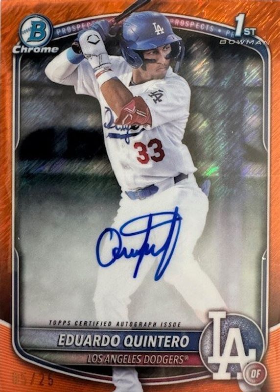 Auctions Ending Soon for Eduardo Quintero 2025 Bowman #CPA-EQ Chrome Prospect Auto - Orange Shimmer Refractor /25 (1st) RAW