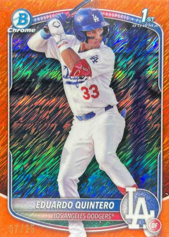 Auctions Ending Soon for Eduardo Quintero 2025 Bowman #BCP-115 Chrome Prospects - Orange Shimmer Refractor /25 (1st) RAW